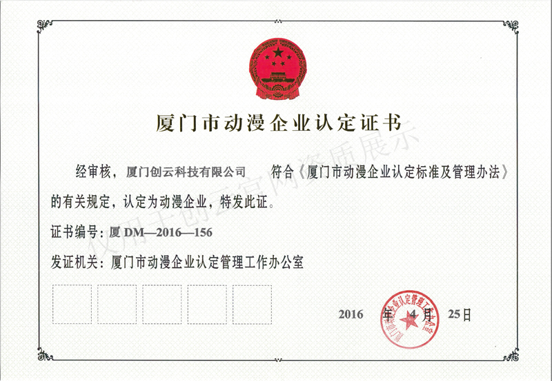 廈門市動漫企業(yè)認定證書